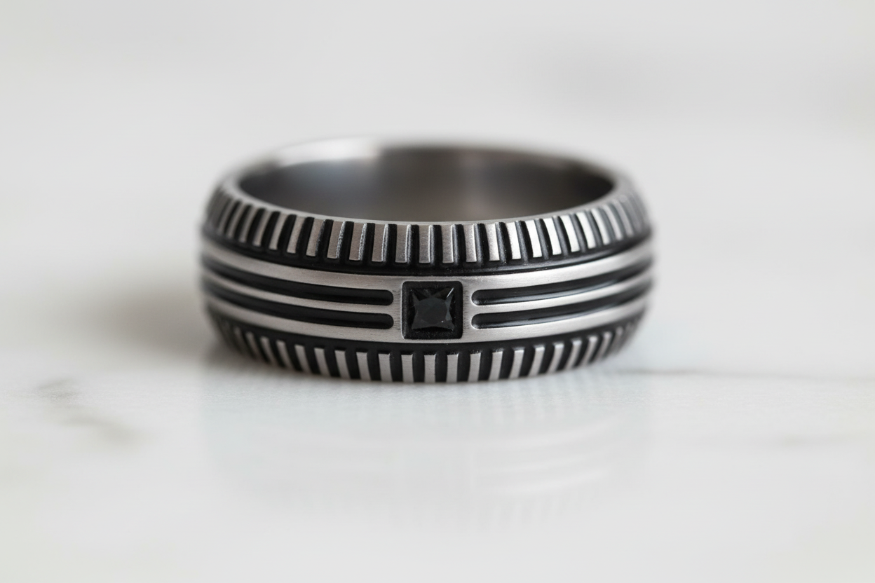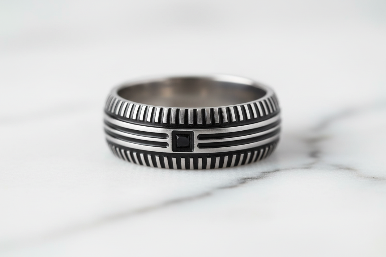 Anello Uomo Acciaio Fascia Geometrica Cristallo Nero 2JEWELS 221078