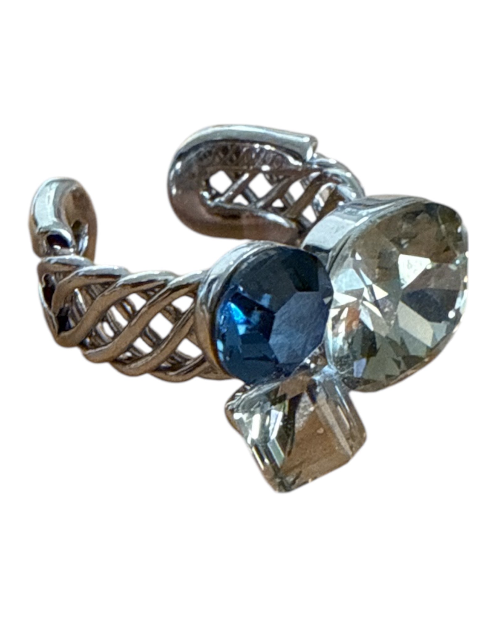 Anello Donna Regolabile Cristalli Bianchi e Blu Design Elegante Fashion