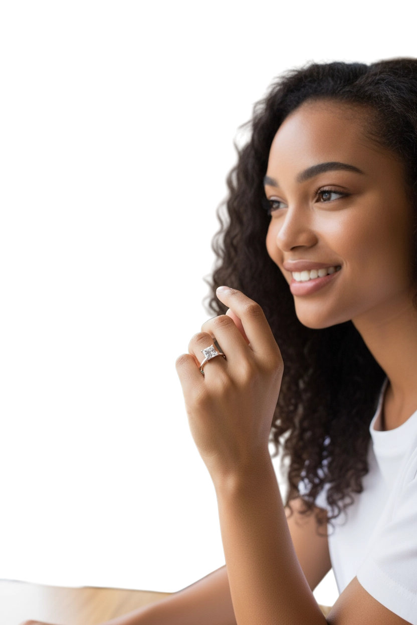 Anello elegante con cristallo taglio quadrato (stile princess) montato su castone a 4 griffe. Disponibile in finitura Oro o Argento. Regolabile, ideale per ogni outfit.