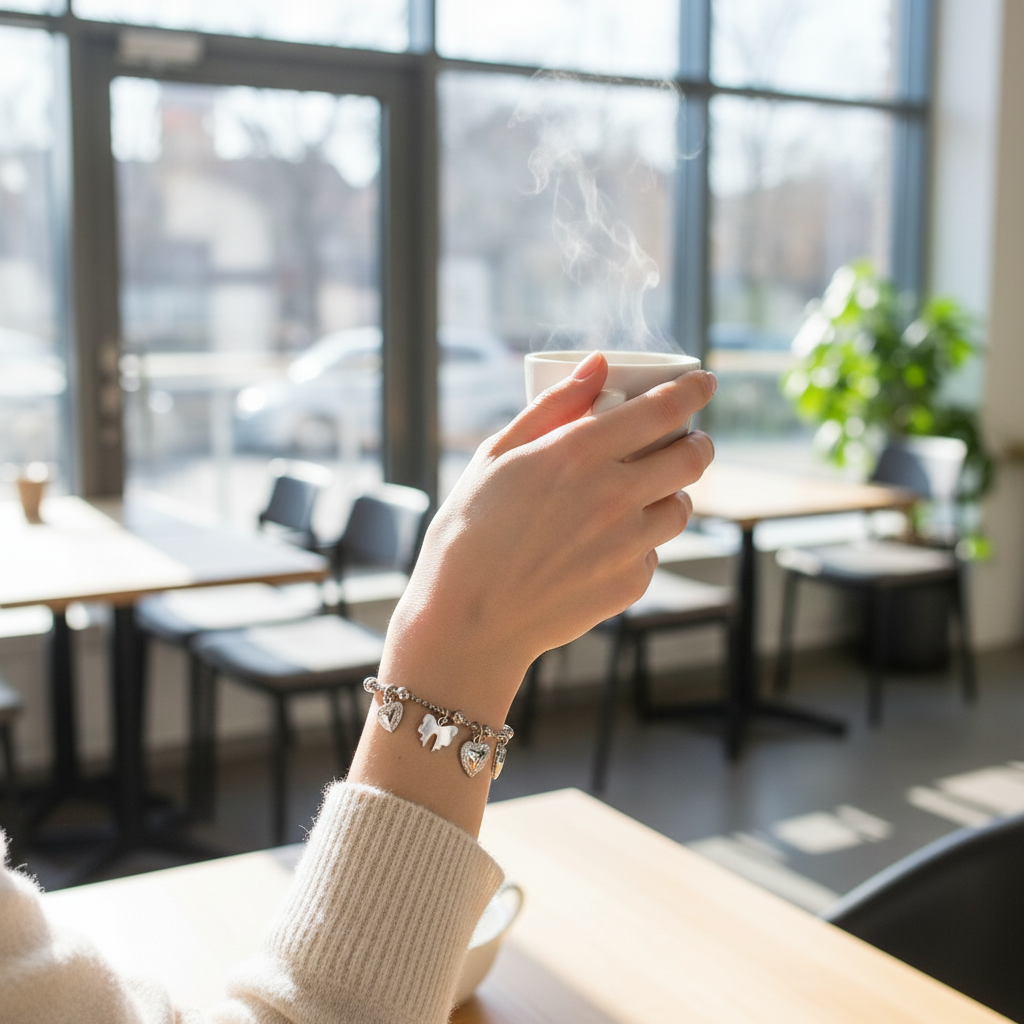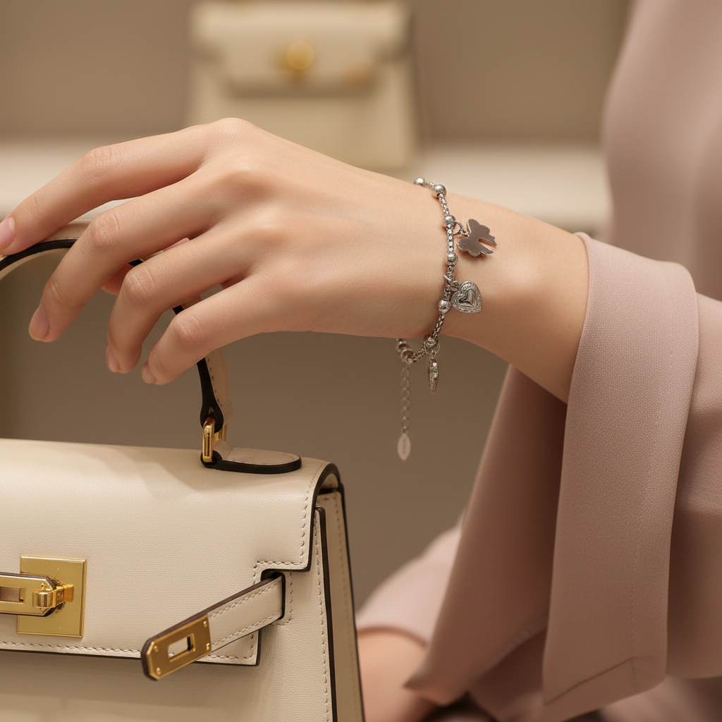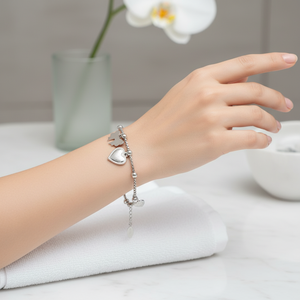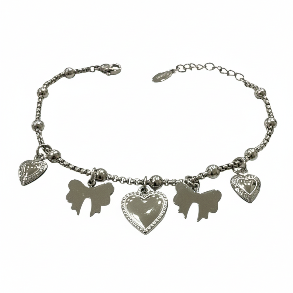 Bracciale Donna Acciaio con Charms Cuori e Fiocchi