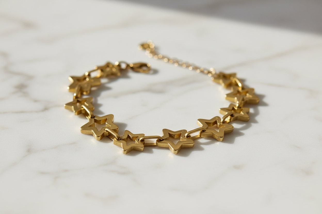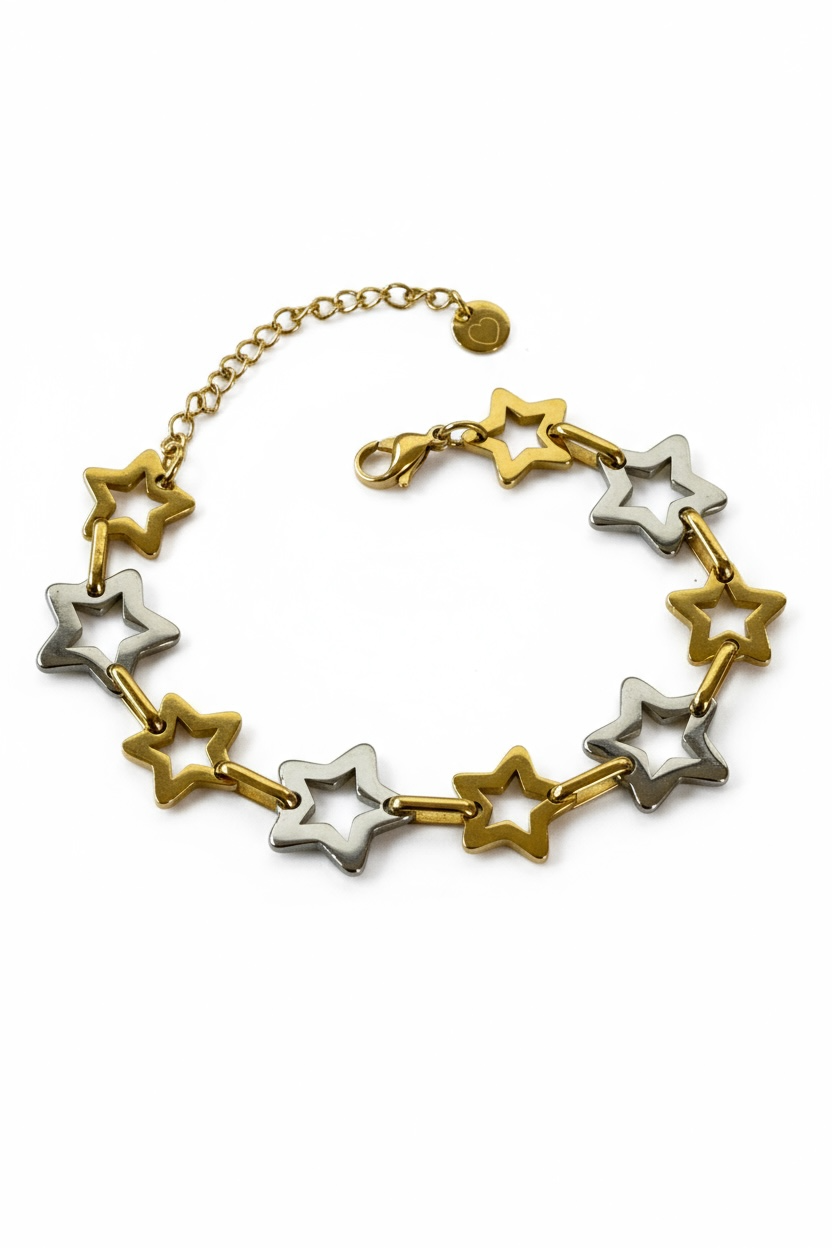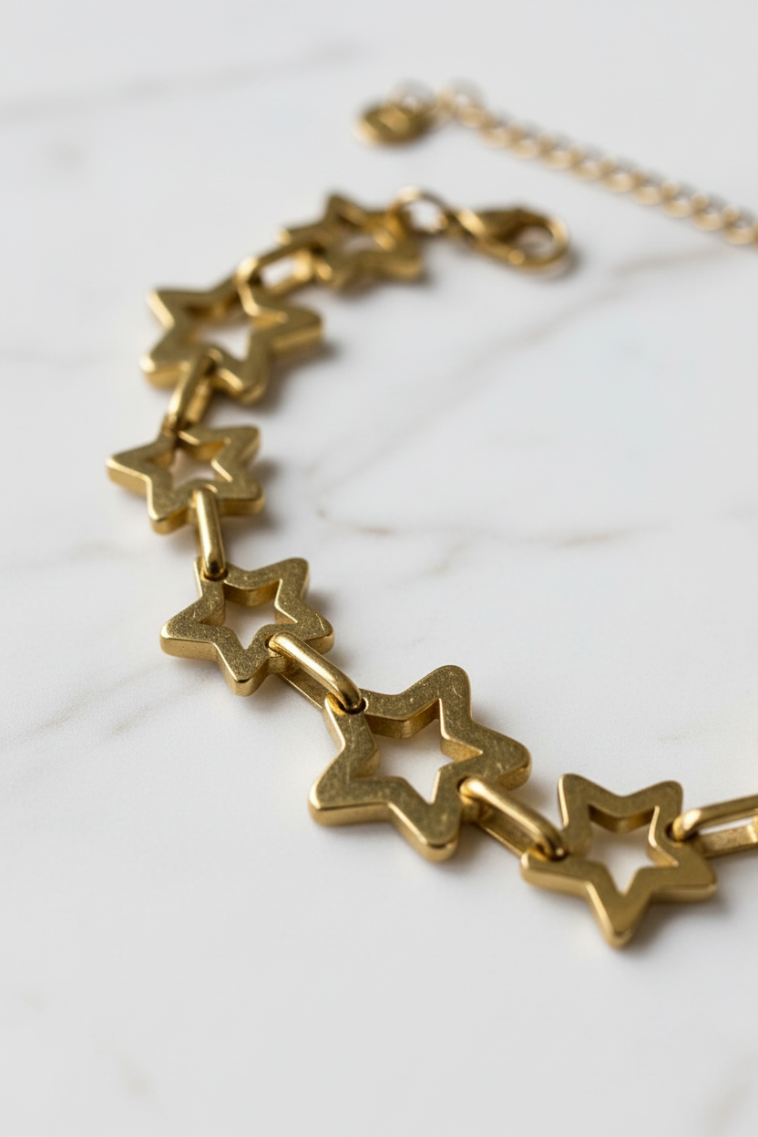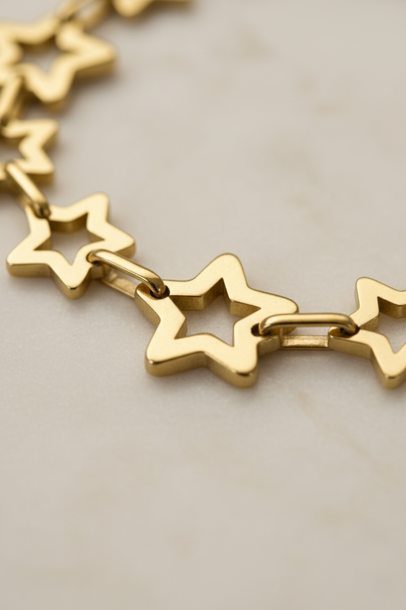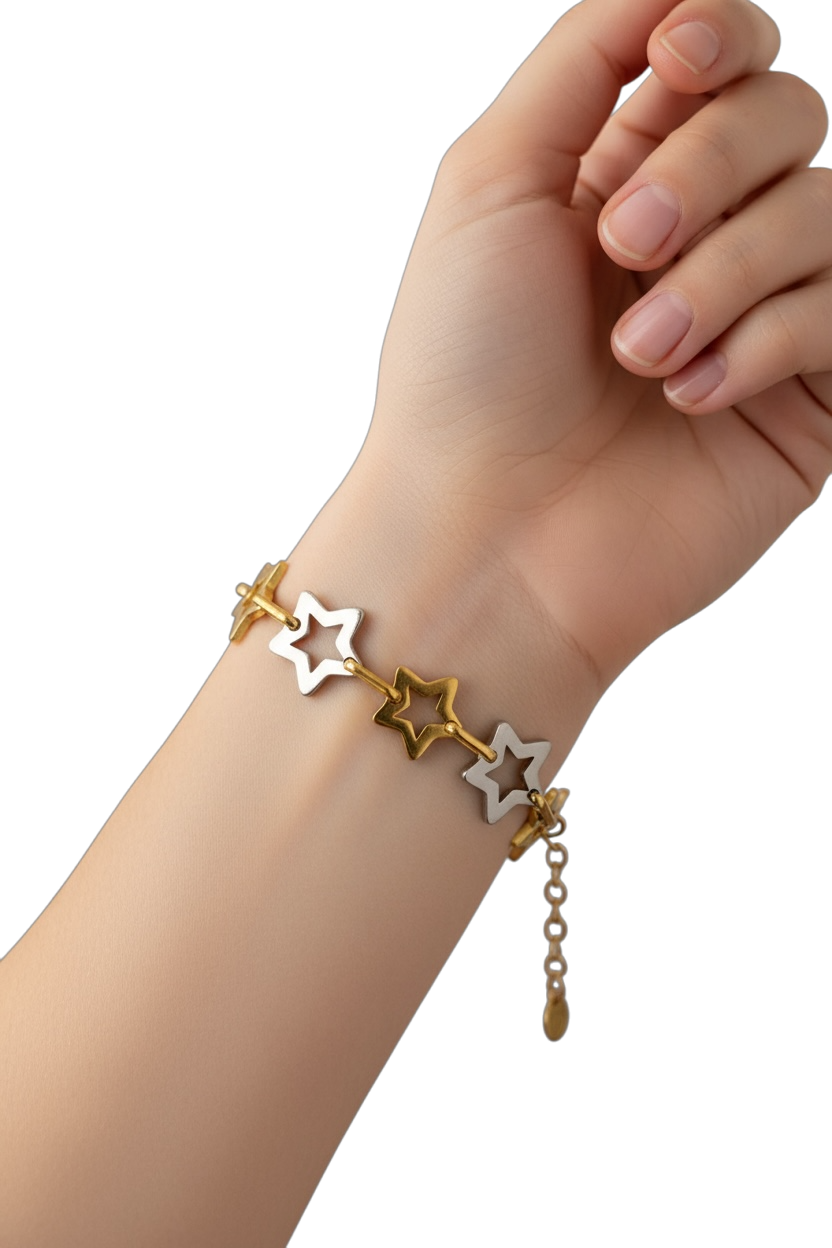 Questo bracciale è perfetto per chi ama accessori delicati ma d'impatto. Le stelle vuote creano un effetto luminoso e arioso, mentre la doppia opzione di colore permette di abbinarlo facilmente a qualsiasi stile.