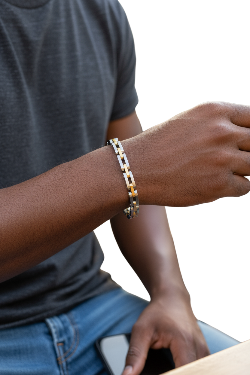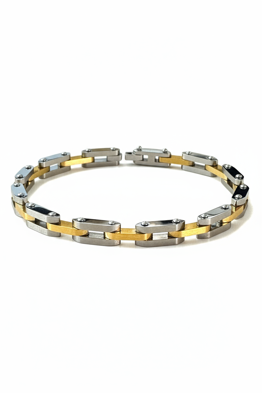 Bracciale Uomo Acciaio 316L Bicolore Oro Silver Regolabile 21cm KX-888