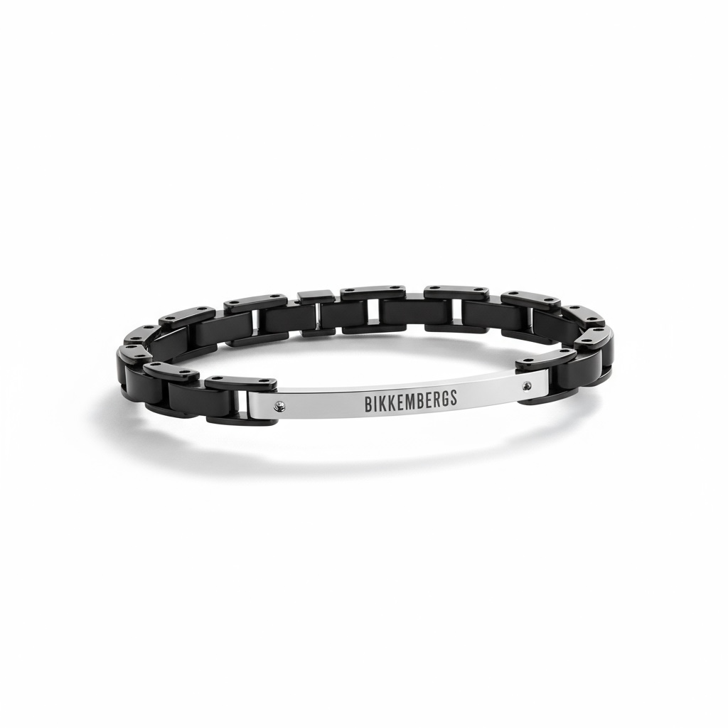 Bracciale Uomo Bikkembergs Acciaio Nero Catena Barra Logo WILB02BB