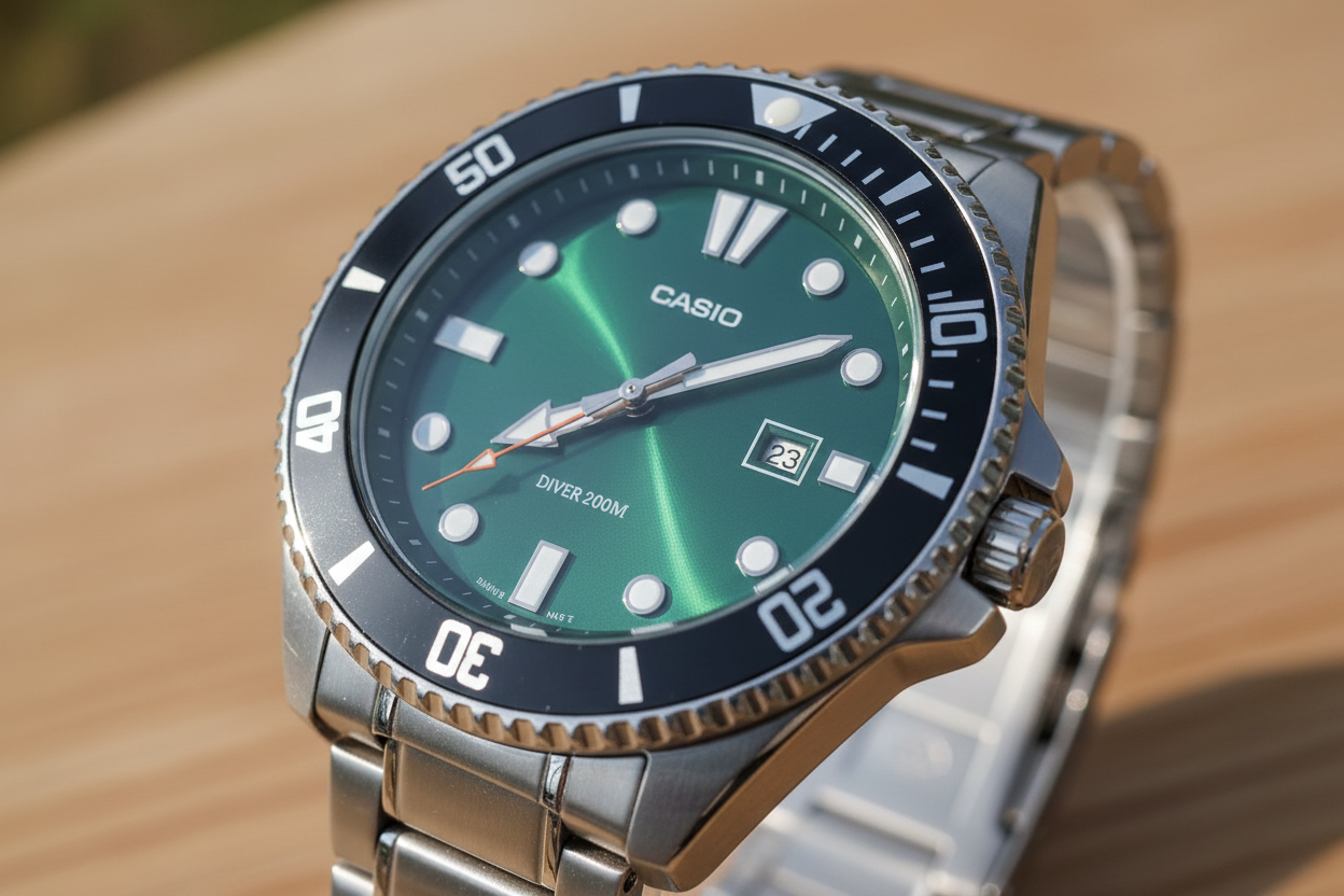 Orologio Uomo Casio Acciaio Quadrante Verde Diver MDV-107D-3A2VDF