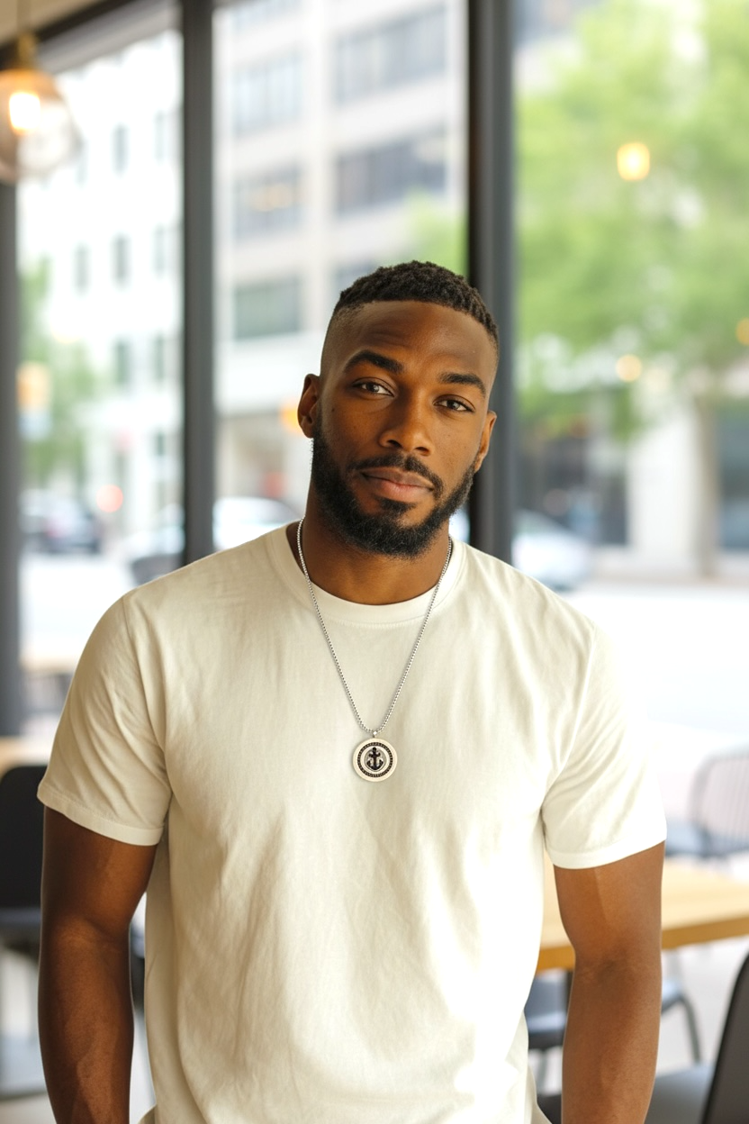 Collana da uomo in acciaio inossidabile di alta qualità, resistente e durevole, ideale per chi cerca un accessorio elegante e simbolico. Il ciondolo rotondo con ancora centrale richiama il mondo nautico e rappresenta forza, stabilità e libertà. La catena maglia serpente dona un look moderno e versatile, perfetto per abbinamenti casual con t-shirt o outfit più ricercati.