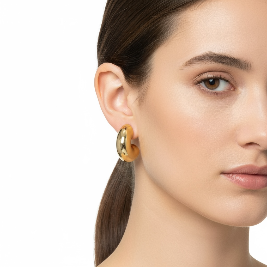 NUOVO Orecchini Donna Gold Design Curvo Chunky Eleganti Fashion Gioielli