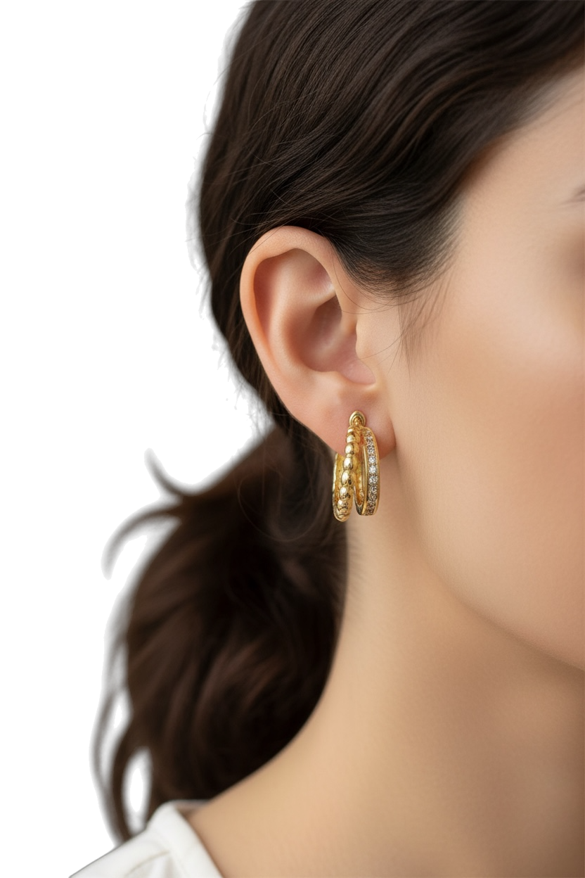 Scopri gli Orecchini a Cerchio in Acciaio Inox con Zirconi, il perfetto equilibrio tra eleganza classica e luminosità contemporanea. I zirconi scintillanti catturano la luce ad ogni movimento, regalandoti un look sempre impeccabile.