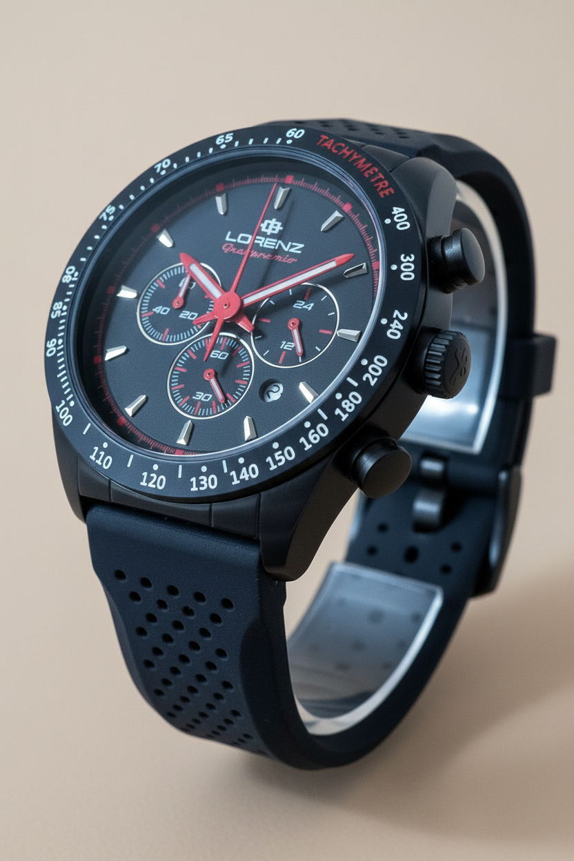 Orologio Uomo Lorenz Granpremio Cronografo Nero Silicone Tachimetro 030233AA
